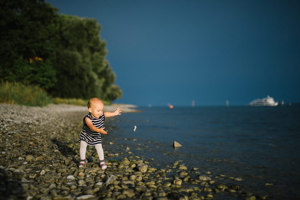 Wir gestalten euer Familienshooting draußen in der Natur, in und um Konstanz, am Ufer des schönen Bodensees im natürlichen Licht – in einer natürlichen Umgebung, da erfahrungsgemäß die Kinder (und auch die Eltern) sich dort am besten entspannen können. In einem Umfeld, das erdet. Dort gibt es auch weniger materielle Ablenkung, sodass die Beziehungen präsenter werden – woraus dann die Emotionen geboren werden (können). Mit der Zeit wächst das Miteinander, sodass ich als Fotograf bei eurem Familienshooting in den Hintergrund treten kann.